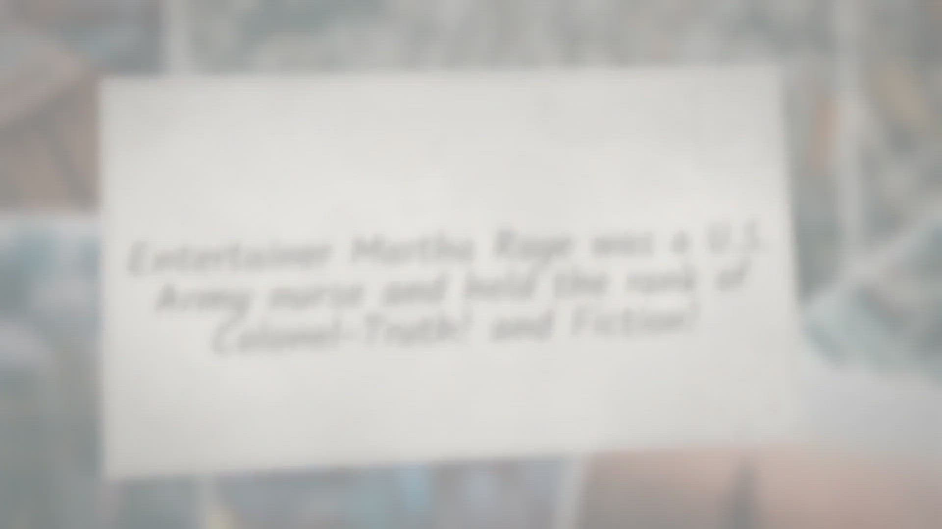 Entertainer Martha Raye was a U.S. Army nurse and held the rank of Colonel-Truth! & Fiction!